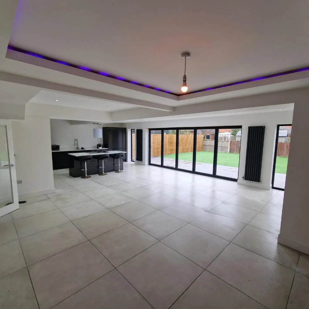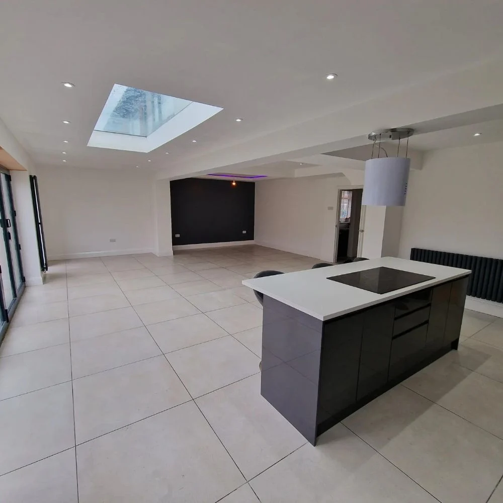 This typical 3 bed semi now boasts a two storey side and single storey rear extension, with walk on glass roof. The house now offers 4 bedrooms, with en-suite and walk in wardrobe, utility space, open plan kitchen/dining and a cinema room.