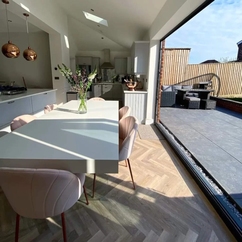 This extension and refurbishment project has completely modified my clients way of living. With the new addition of the single storey wrap around, my client now has the benefit of being able to enjoy the social space within shared dining/kitchen, which also has a newly installed utility and WC.